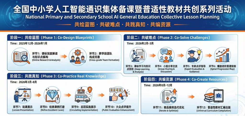 本次活动是专委会推动人工智能教育从指南走向课堂的关键一步,通过跨区域和学段的教师协同,逐步构建全国中小学人工智能通识教学实施的资源体系与教研生态。系列教研活动将持续开展,欢迎全国中小学教师持续关注并参与。