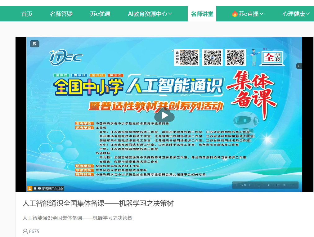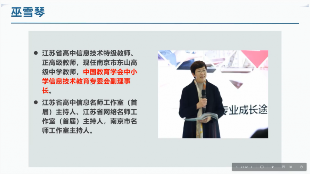 本次活动由南京市东山高级中学正高级教师、中国教育学会中小学信息技术教育专业委员会第九届理事会副理事长巫雪琴主持,中国教育学会中小学信息技术教育专委会秘书长李锋教授、中国教育学会中小学信息技术专委会副秘书长胡艺龄教授出席,来自全国各地的信息科技教师及教育专家近1万人齐聚云端,共同围绕”机器学习之决策树”主题开展深度教研。