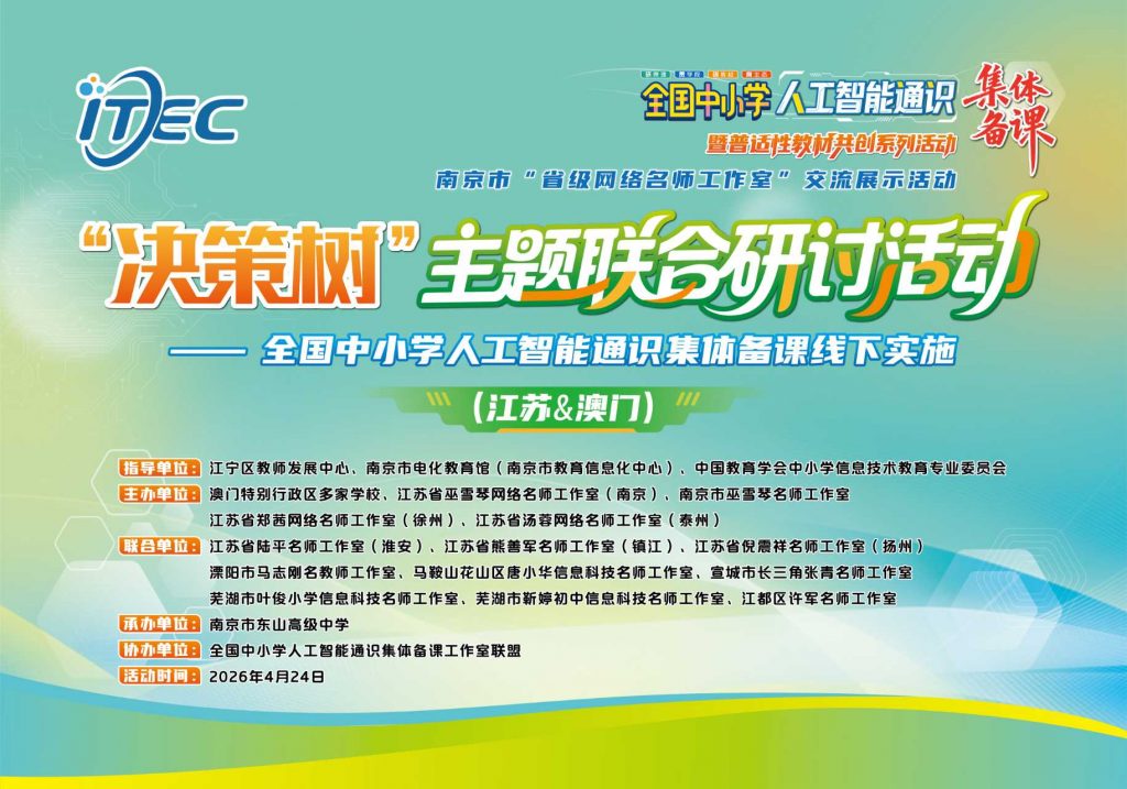 为贯彻落实国家关于人工智能教育普及的战略部署,推动中小学人工智能通识教育的体系化、普适化发展,全国中小学人工智能通识集体备课暨普适性教材共创系列活动已正式启动。本次“决策树”主题跨区域联合实施与研讨活动,作为系列活动的关键实施与验证环节,聚焦“决策树”这一具体知识点,汇聚全国多学段优秀实践智慧,探索并沉淀可复制、可推广的人工智能通识教学范式和普适性教学资源,为后续系列主题活动的开展与教材资源的体系化建设奠定坚实基础。